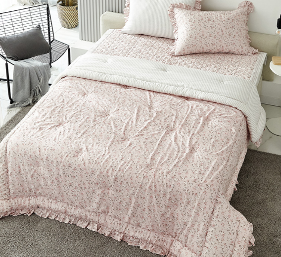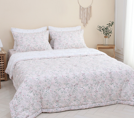 이브자리 멜리즈 모달 이불은 공주풍 느낌의 핑크 이불입니다. 분홍색 플라워 패턴과 프릴 디테일이 포인트인 모달 이불로, 딸아이 이불은 물론 신혼 침구로 사용해도 좋습니다. 너도밤나무에서 추출한 식물성 섬유 모달로 만들어져서 피부가 예민한 분들도 사용하기 좋습니다. 바스락 거리는 소리 없는 이불로 청각에 예민한 분들도 숙면을 취하기 좋습니다. 아기자기하고 러블리한 느낌의 이불이라 더욱 눈길이 가는 것 같네요.
