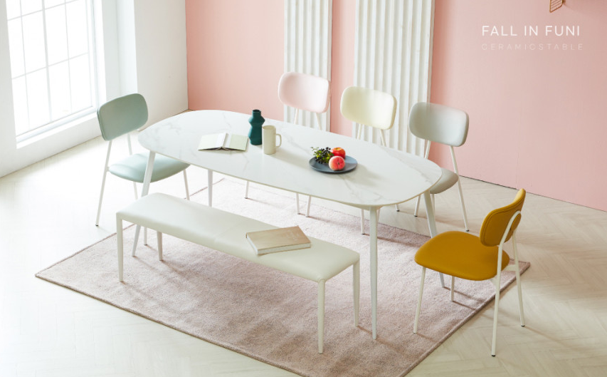 고급스러우면서도 많은 장점이 있는 세라믹 식탁이 최근 큰 유행을 타고 있습니다. 세라믹 식탁의 장점으로는 스크래치나 열은 물론 세균 및 곰팡이에도 강하다는 장점이 있고, 수명이 길어서 오래 사용하기 좋은 식탁입니다. 다만 세라믹이다보니 겨울철에는 식탁이 차갑게 느껴질 수 있으며, 깨질 염려도 있고 무겁다는 단점이 있습니다. 그래도 고급스러운 느낌이 드는 식탁이라서 집안의 분위기를 업시켜주는 데에 큰 역할을 하는 예쁜 식탁입니다.