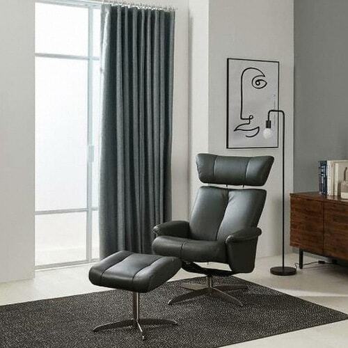 심플한 1인 리클라이너 소파로 까사미아 제품을 추천드립니다. 다리를 올려서 사용할 수 있는 스툴이 별도로 분리되어 있는 제품으로 다양한 공간에서 활용할 수 있는 쇼파입니다. 까사미아 우스터 리클라이너의 경우 천연 소가죽으로 만들어진 의자이며 스틸 다리와의 조화가 모던한 느낌을 줍니다.