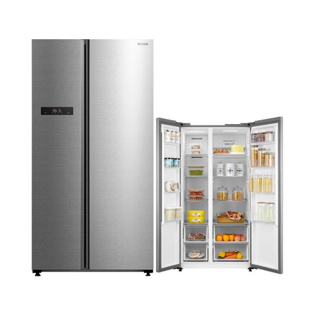 위니아 양문형 냉장고의 경우 왼쪽이 냉동실이고 오른쪽이 냉장실 구조로 이루어져있습니다.
