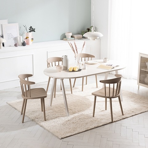 모던하면서도 북유럽 느낌이 나는 식탁으로 다양한 주방 인테리어와 두루두루 어울리는 디자인입니다.