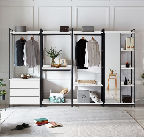 하지만 그걸 상쇄할 만한 장점도 있어요. 모든 옷을 한 눈에 볼 수 있으며, 원하는 모듈과 사이즈 선택이 자유롭다는 큰 장점이 있습니다. 또한 앞에 커튼을 달아서 먼지 쌓이는 것과 지저분해지는 것을 한 번에 잡을 수도 있습니다.