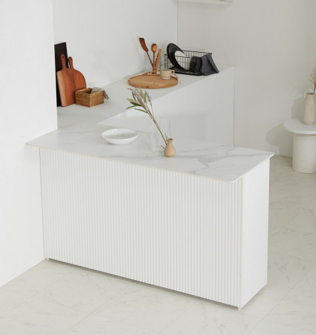 크라운퍼니쳐의 세라믹 아일랜드식탁은 템바보드를 이용하여 고급스러운 느낌이 나는 주방식탁입니다.