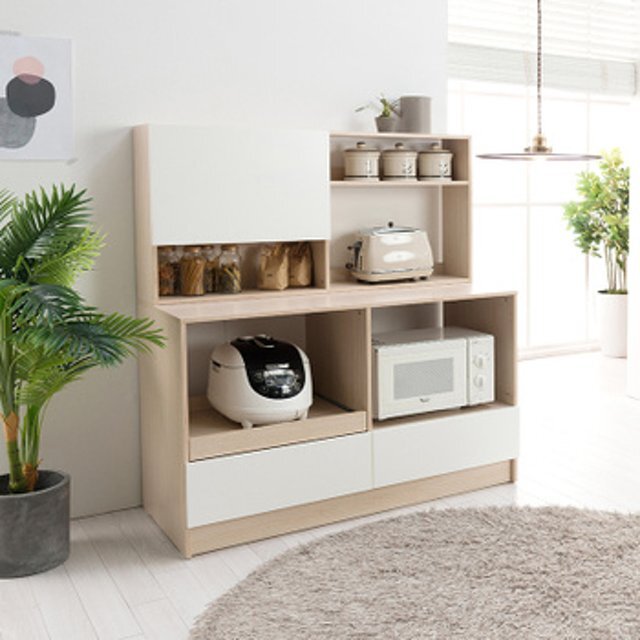 한쪽에는 전자레인지나 큐커를, 한쪽에는 밥솥을 놓고 사용할 수 있습니다.